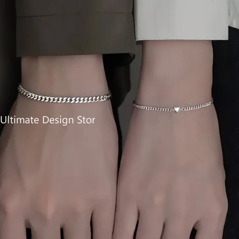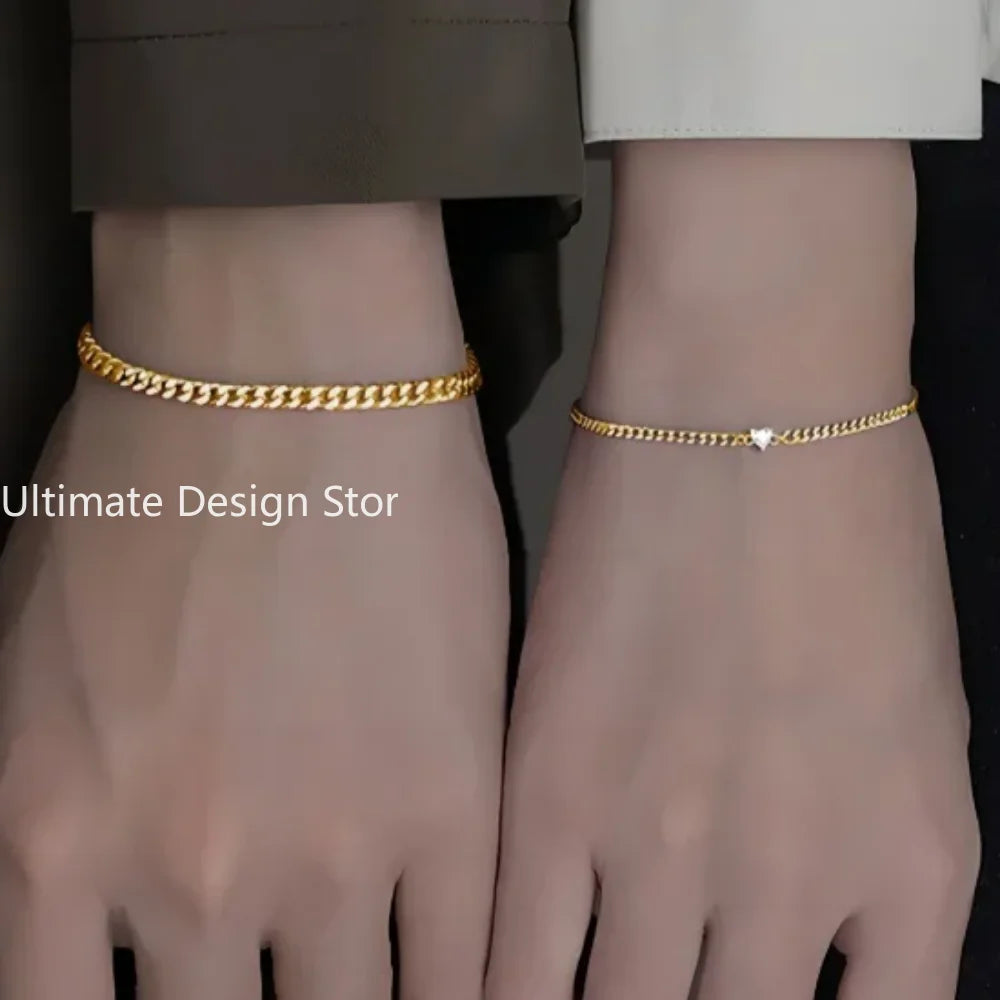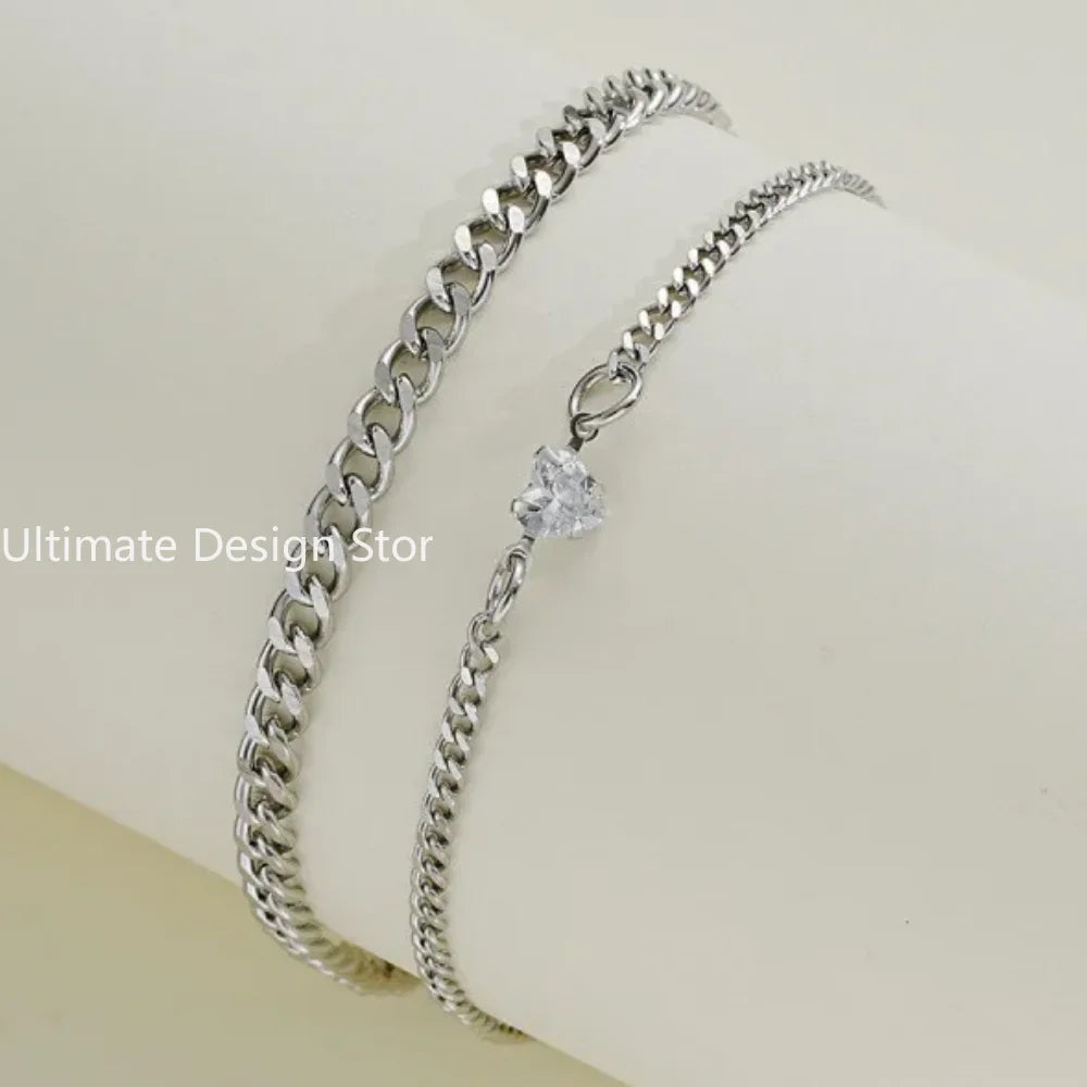 2PCS Stainless Steel Couple Bracelets – Crystal Heart Chain Jewelry™