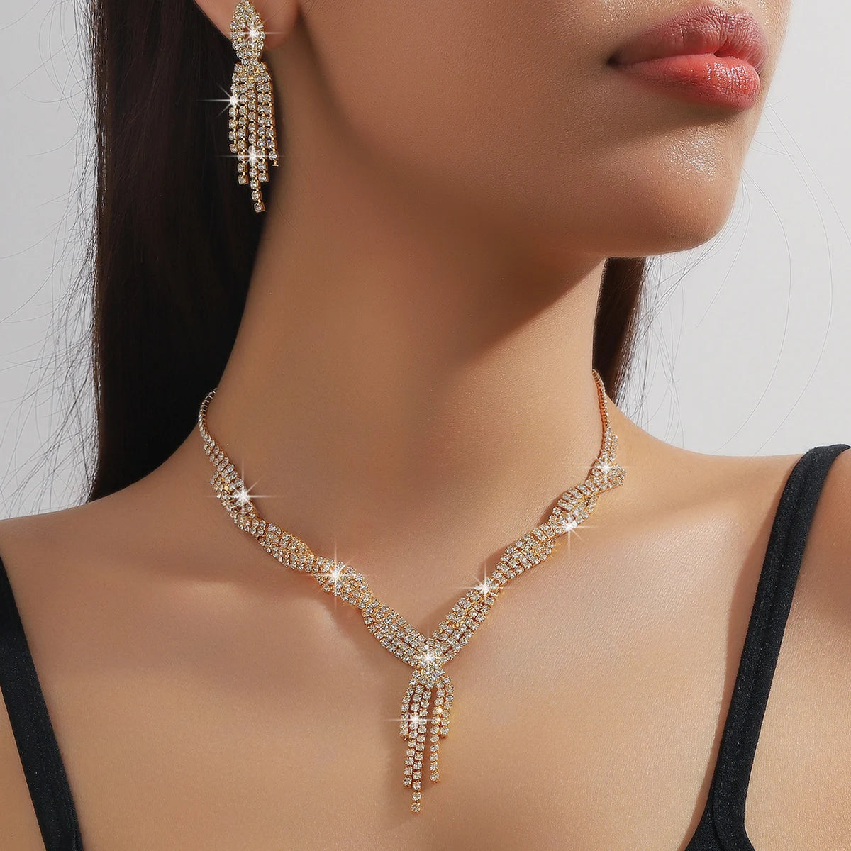 3PC Elegant Tassel Jewelry Set – Copper Inlaid Necklace & Earrings™