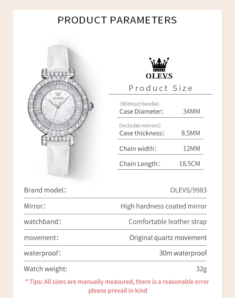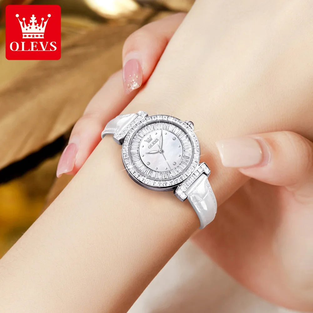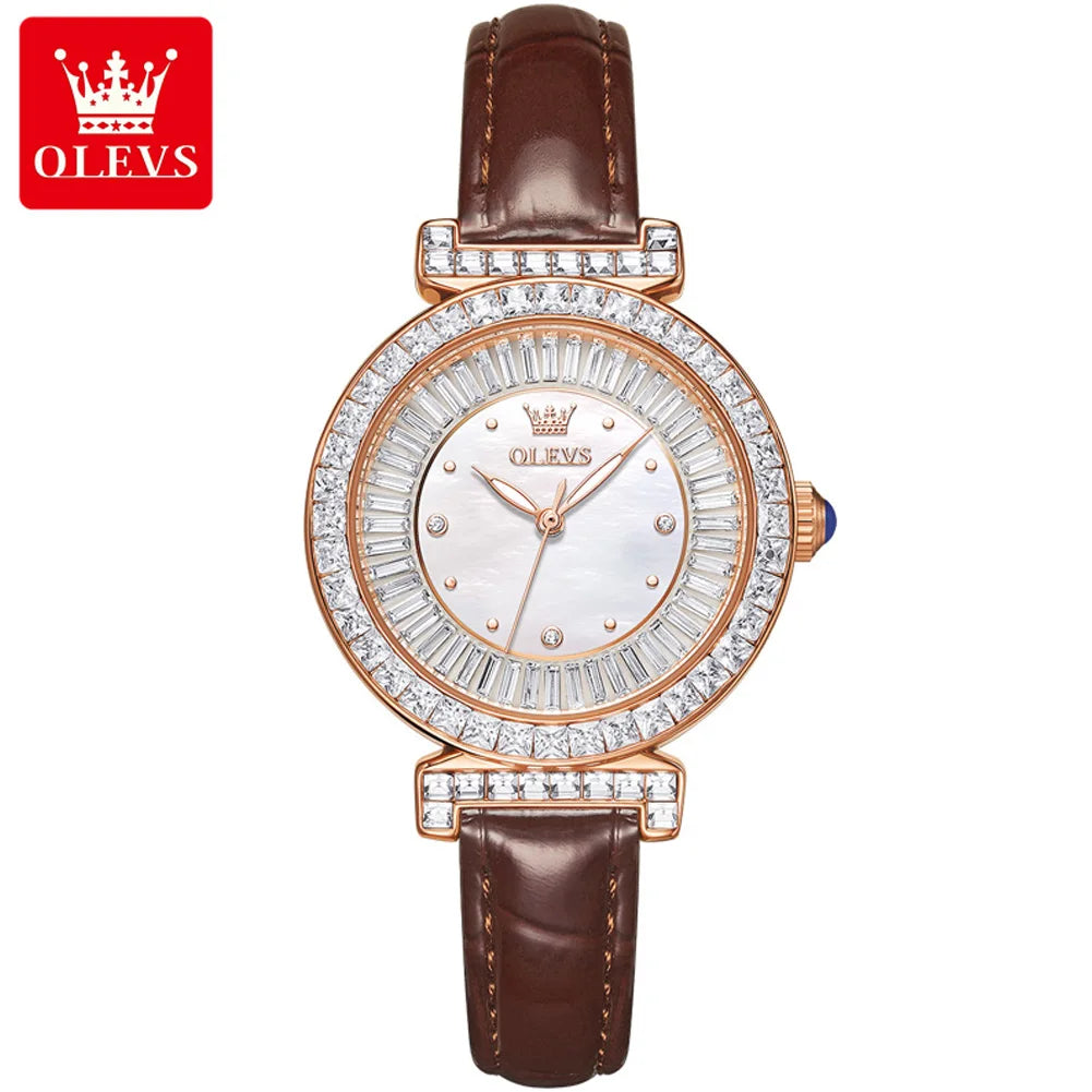 OLEVS Elegant Women's Diamond Watch – Waterproof Quartz with Leather Strap™