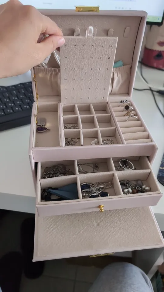 Three-Layer Design for Maximum Storage – Spacious compartments to organize earrings, rings, watches, and other accessories.