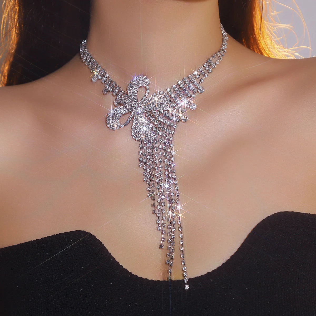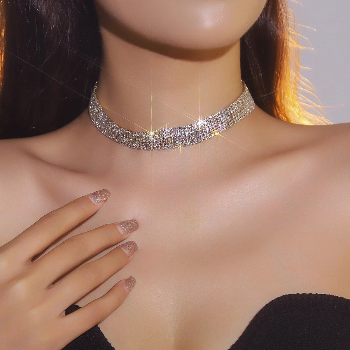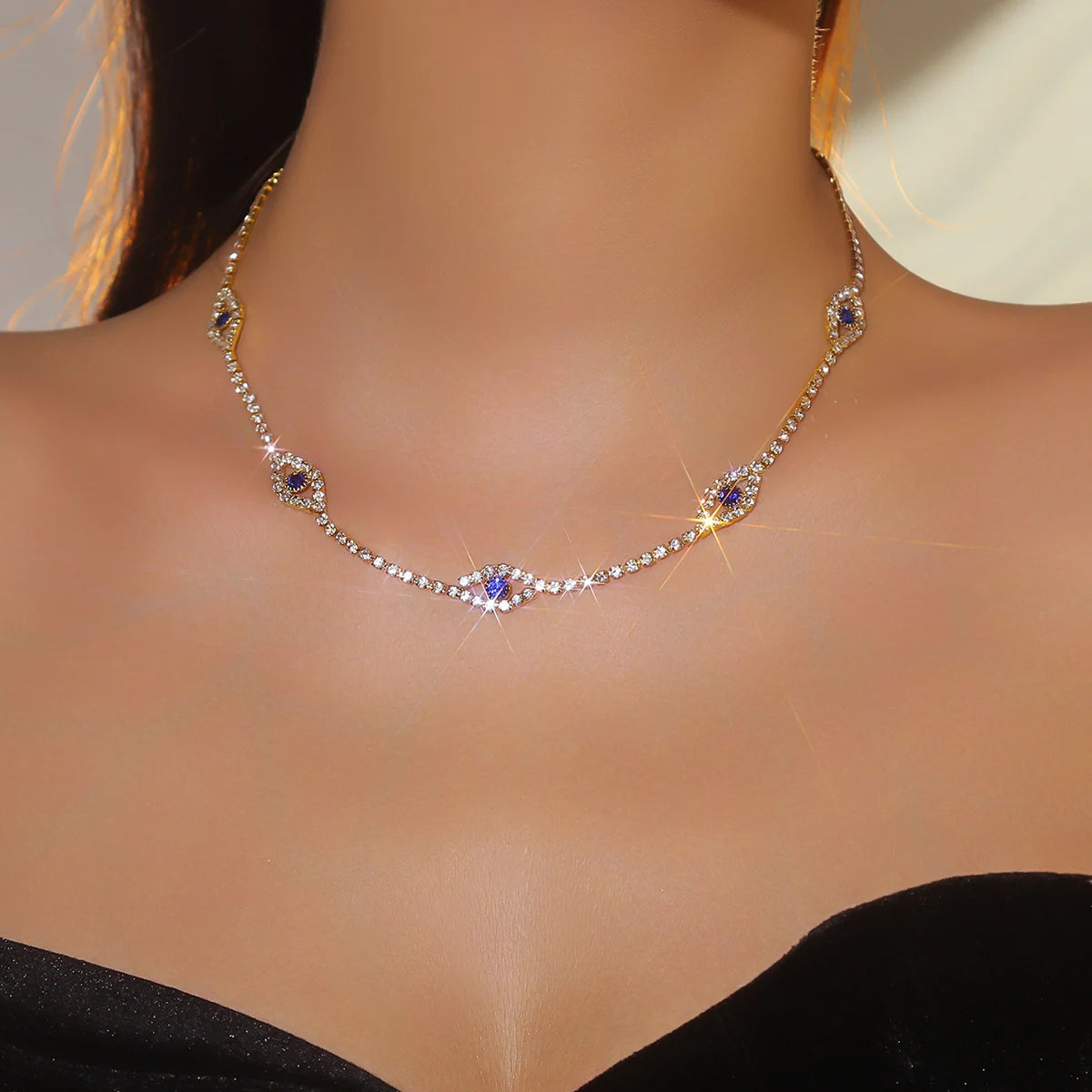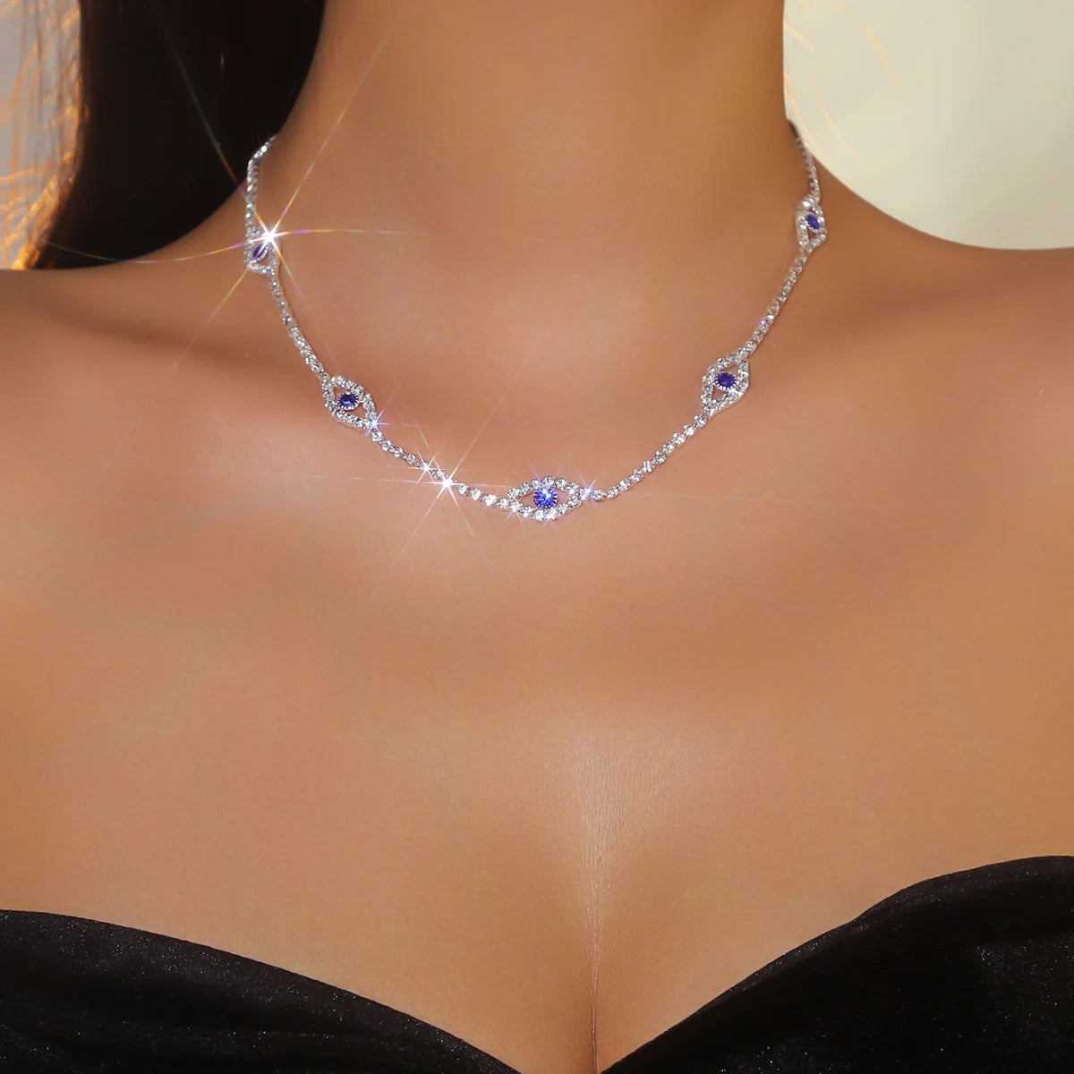 • Sparkling Rhinestone Necklace for Women – Eye-catching statement piece with dazzling rhinestones that add elegance to any bridal or formal look.