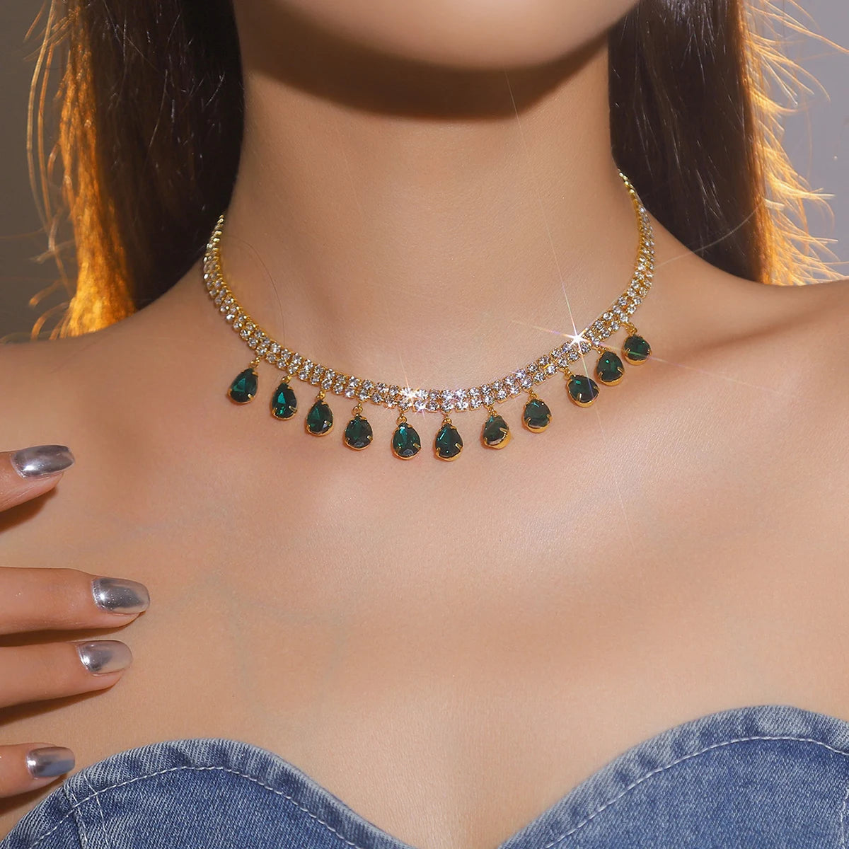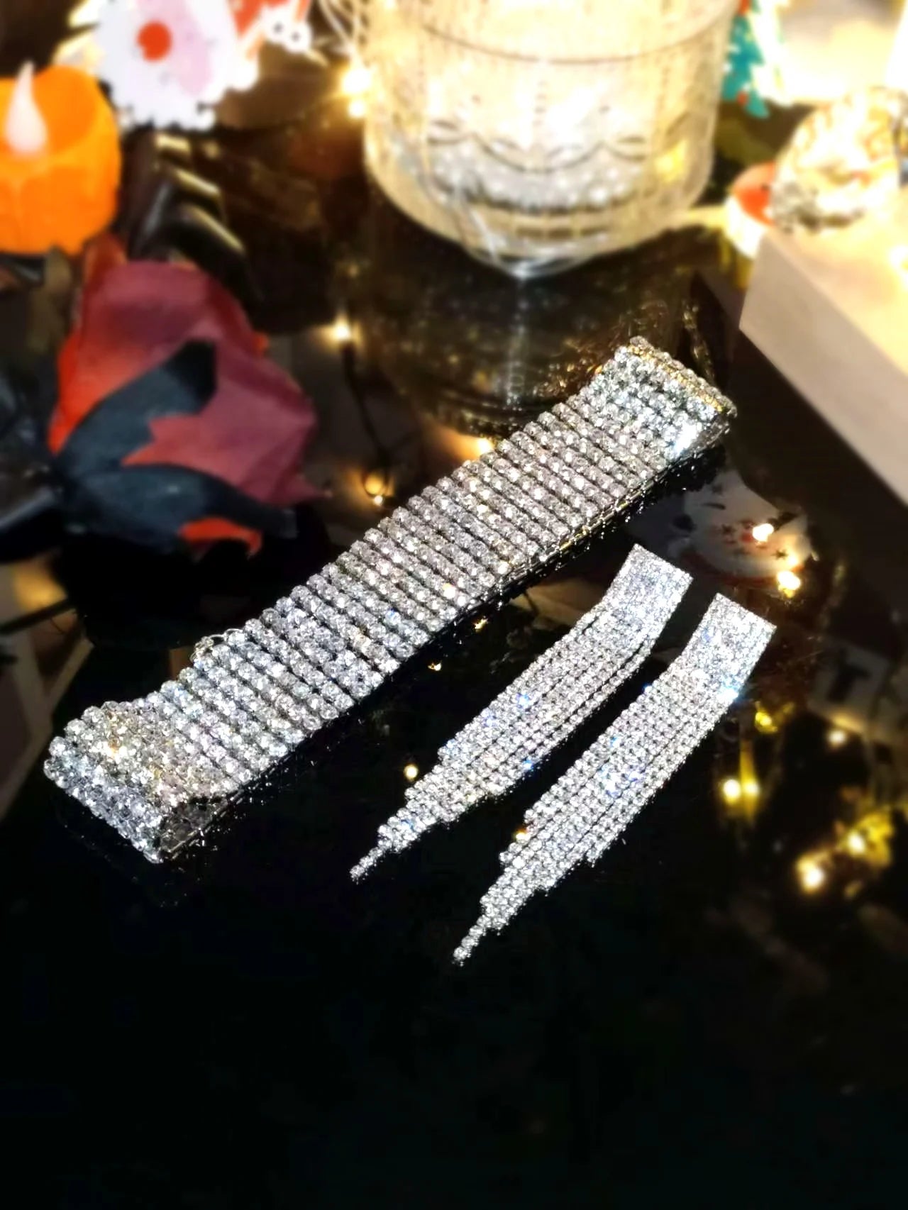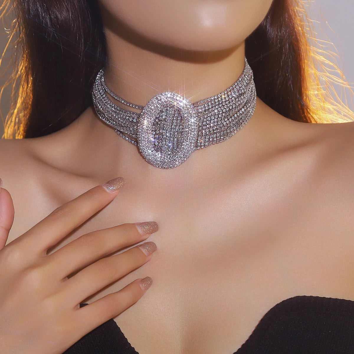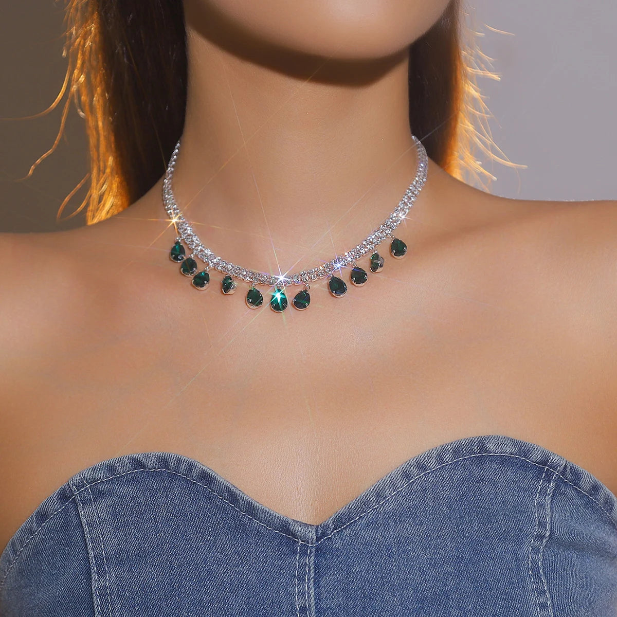 • Sparkling Rhinestone Necklace for Women – Eye-catching statement piece with dazzling rhinestones that add elegance to any bridal or formal look.