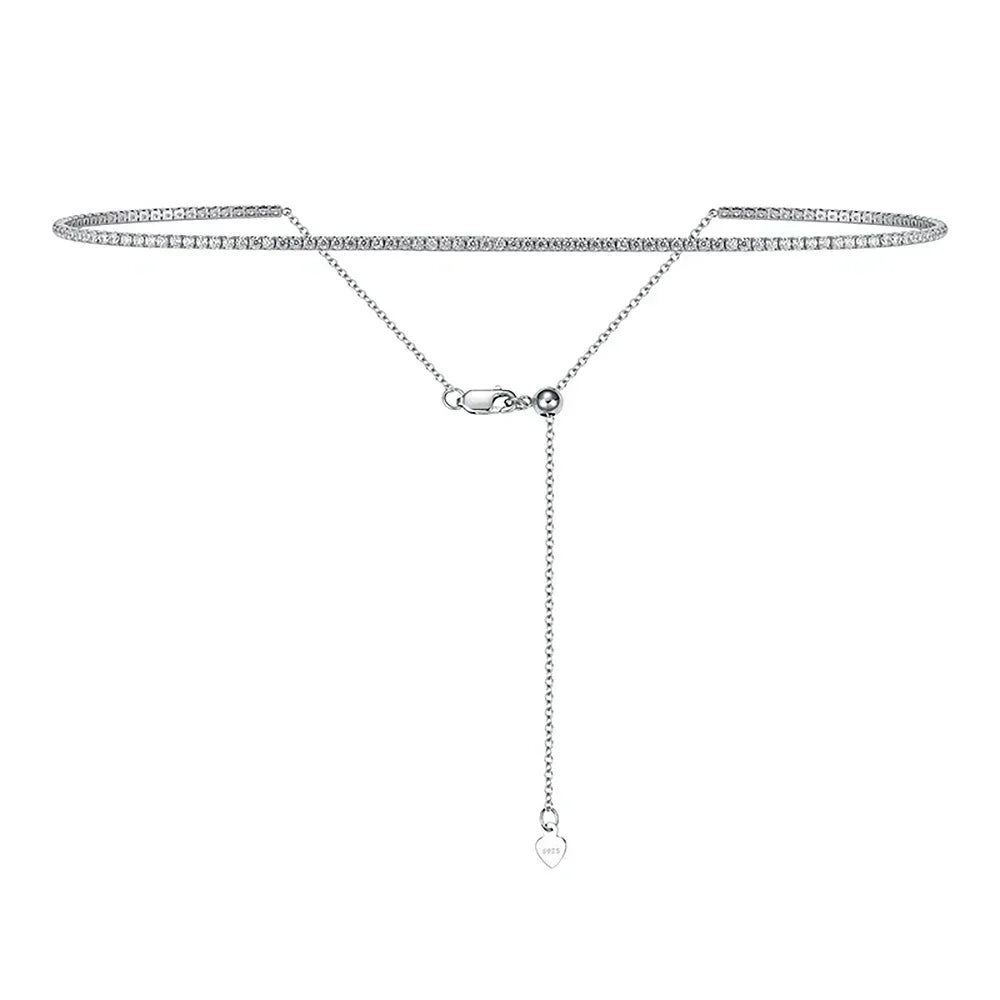 2mm Moissanite Tennis Necklace – 925 Silver Adjustable Diamond Choker for Women™