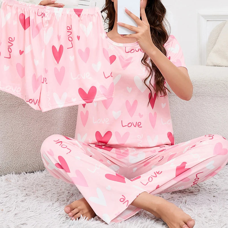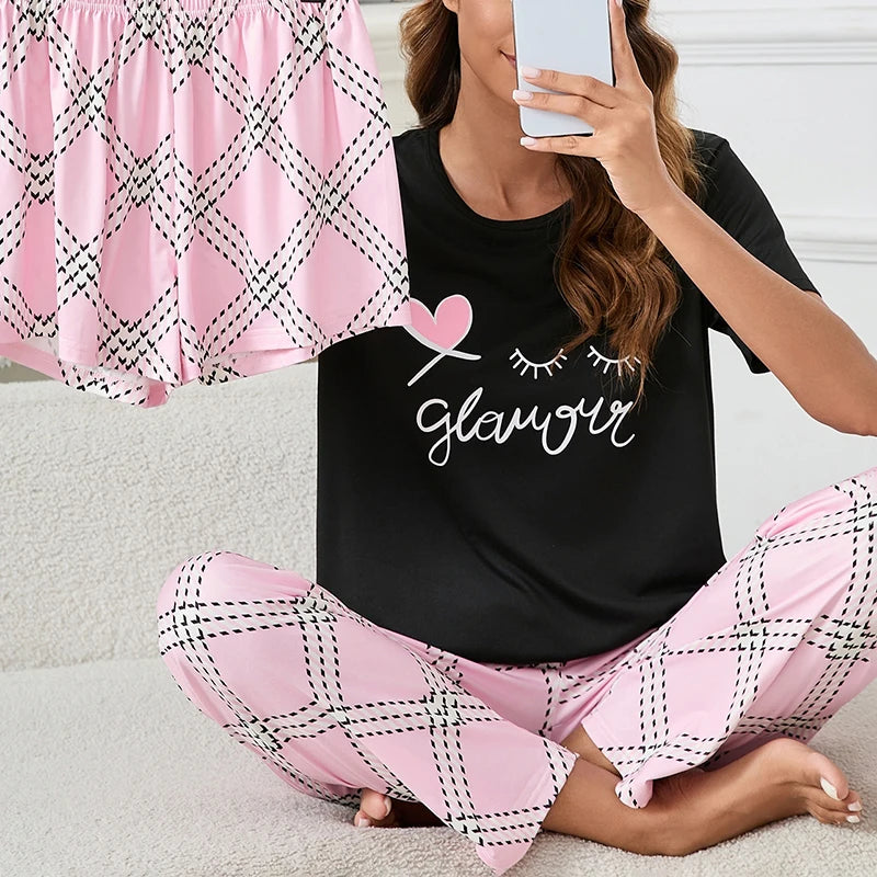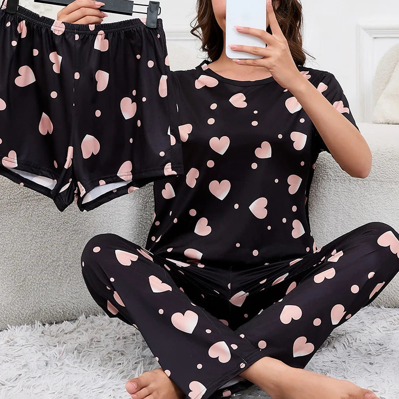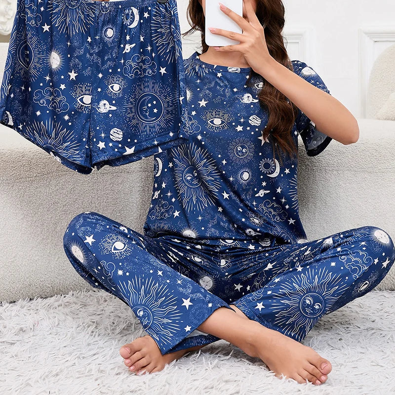 Women's 3-Piece Printed Pajama Loungewear Set – Casual Sleepwear™